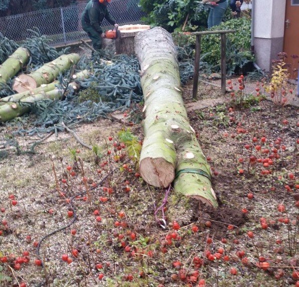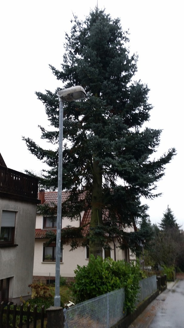 Vorher, ca. 17m Höhe, Fällung einer Nobilistanne